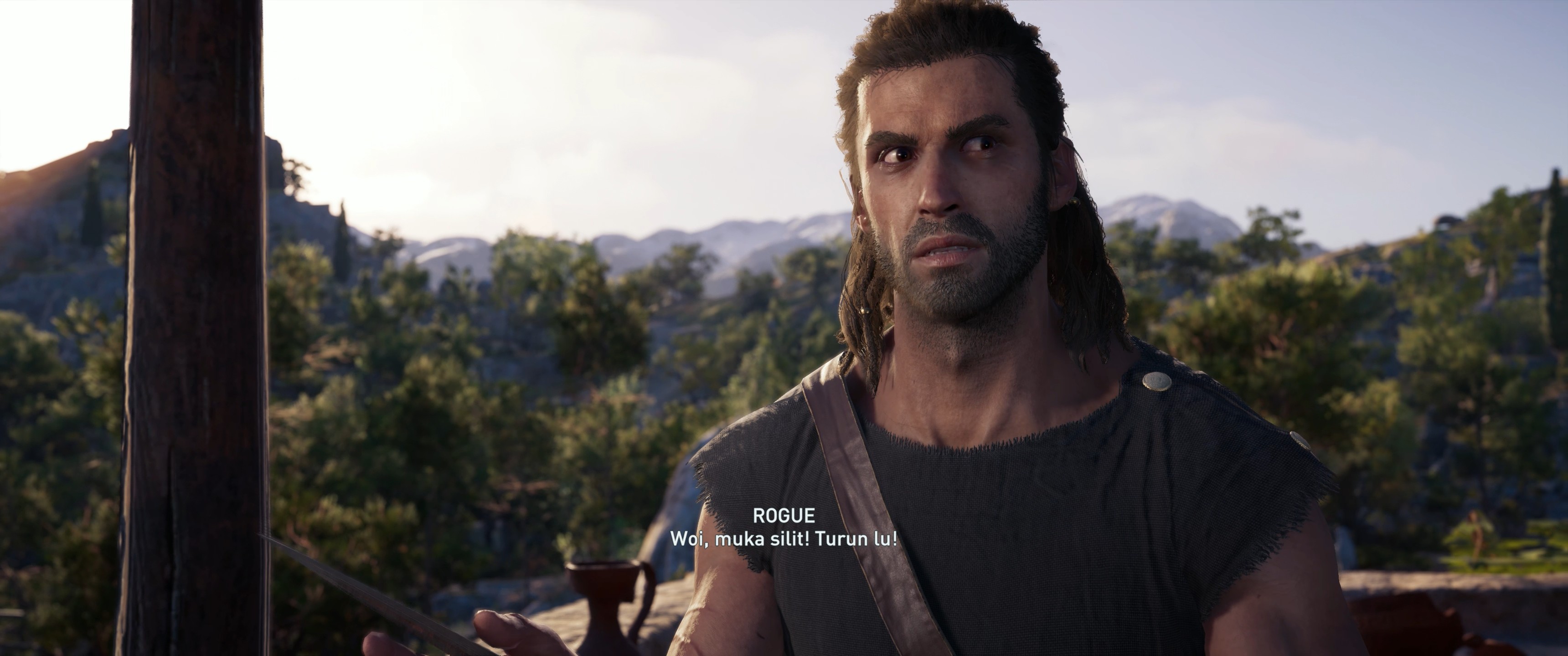 Experience Assassin's Creed Odyssey with a hilarious twist in its Indonesian subtitle mod. Perfect for a second playthrough to keep things fresh.