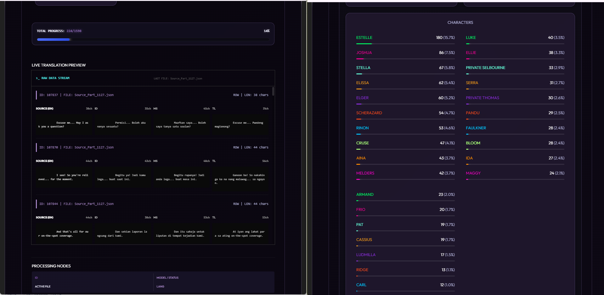 The Stellar Blade localization project takes a turn as the English source is found to be awkward, prompting a shift toward a more vibrant Japanese-to-Austronesian translation model.